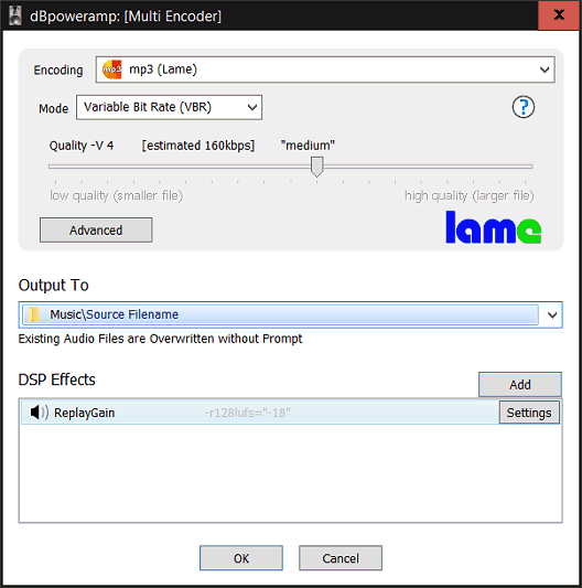 - Existing Source Folder: converted tracks are written to same folder as the source file,