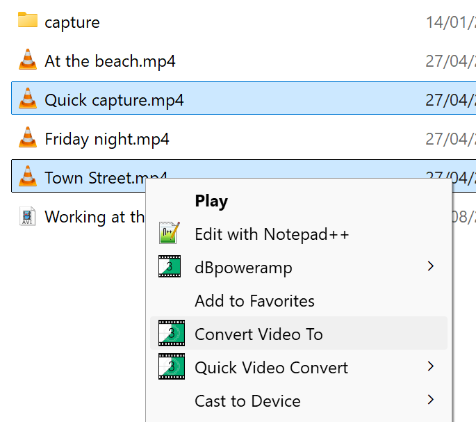 dBpoweramp integrates into Windows Explorer (or Apple Finder), as simple as right clicking on a video file >> Convert To.