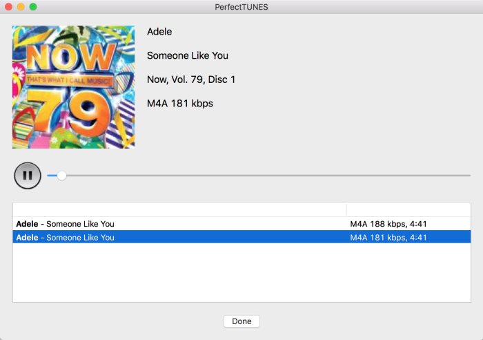 Playback is started, it can be switched between the two audio tracks by clicking the track name. The fingerprinting used by de-dup can lead to false possible matches, cover versions will often be flagged up as a duplicate as the underlying audio is the same.