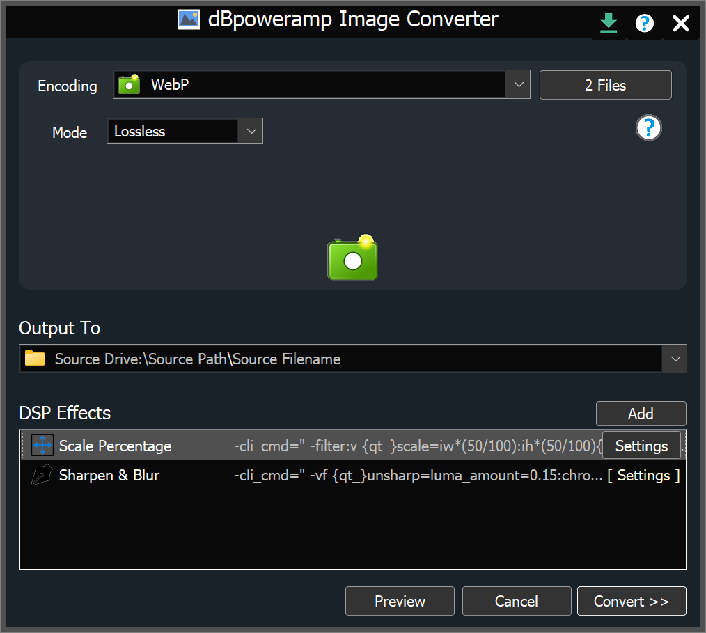 Process images with effects, such as rescale, or sharpen dBpoweramp is a fully featured image converter.